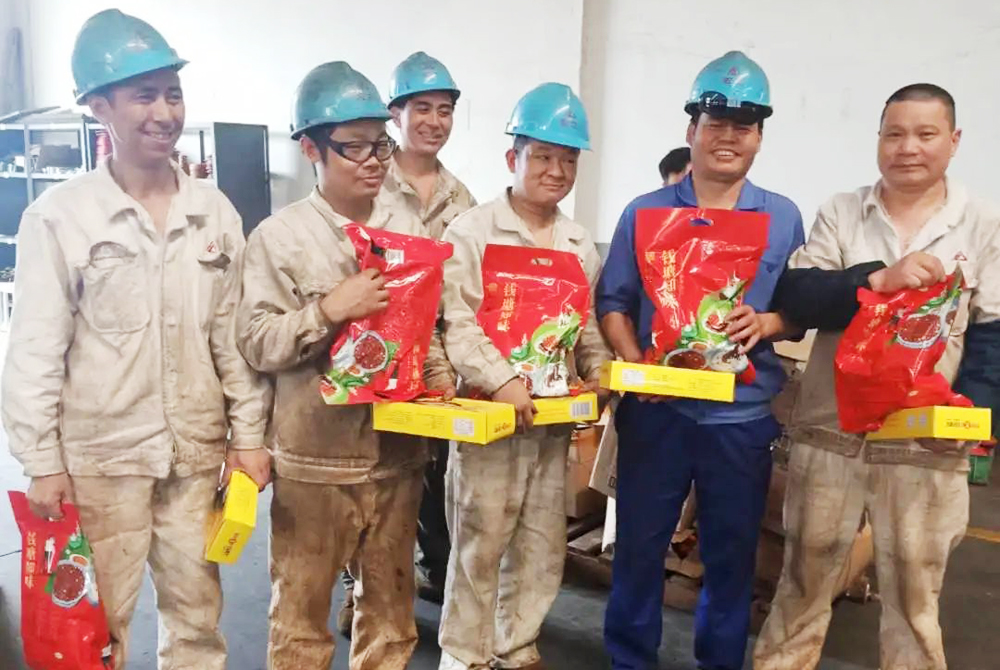 高温工人忙 工会送清凉...